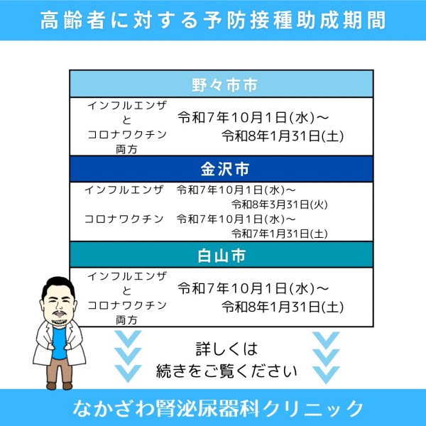 野々市市・白山市・金沢市の高齢者予防接種助成のご案内です。