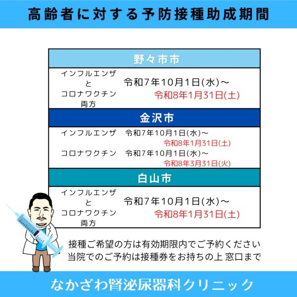 【インフルエンザ・新型コロナ】高齢者向け定期予防接種はお済みですか?