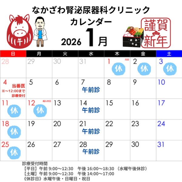 令和8年1月4日(日)が当番医、(診療受付時間9:00〜12:00)