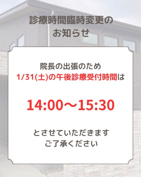 【再掲】1/31(土) 診療時間臨時変更のお知らせ