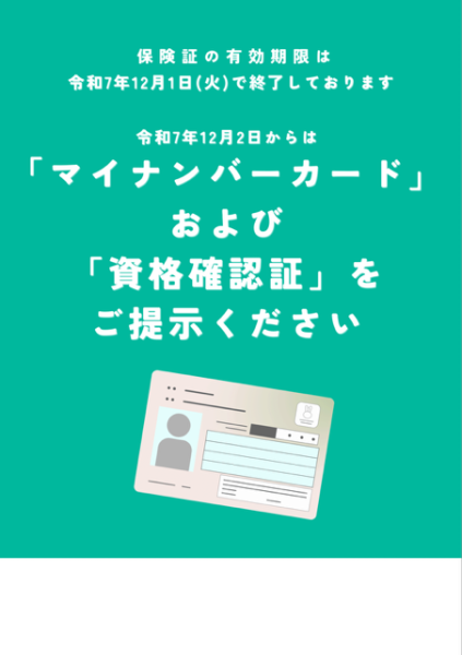 本日は12月2日以降の保険証の扱いについてのお知らせです。