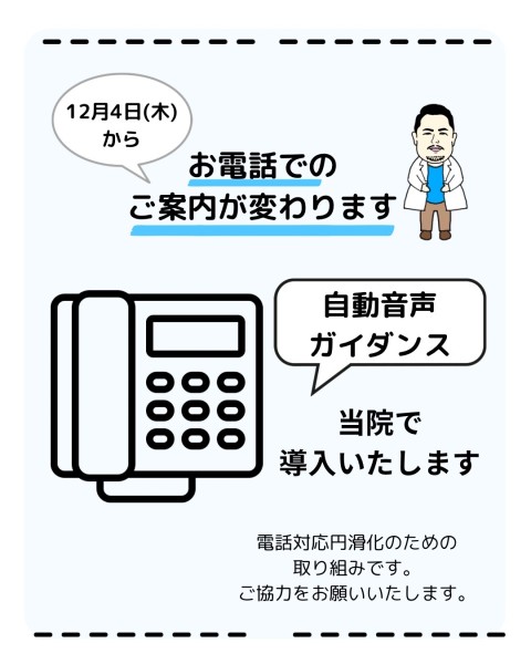 令和7年12月4日(木)より、電話の自動音声ガイダンスを導入いたします。