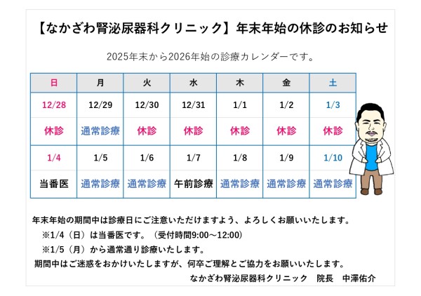 今後もなかざわ腎泌尿器科クリニックをどうぞよろしくお願い申し上げます。